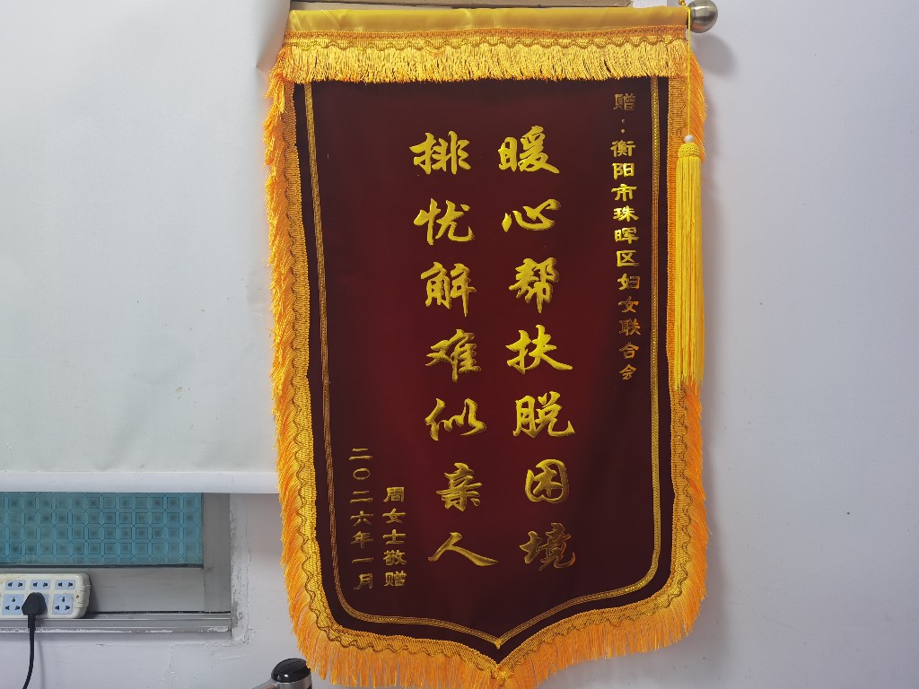 “真心感谢妇联,在我最艰难最无助的时候,给予我帮助!”近日,受家暴困扰的周女士将一面印着“暖心帮扶脱困境排忧解难似亲人”的锦旗送到珠晖区妇联,感谢区妇联帮助自己摆脱家暴困境,开启新的生活。