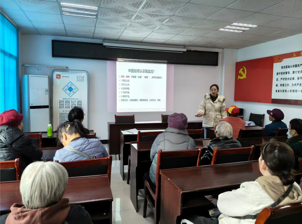为普及高血压防治知识,弘扬中医药文化,1月20日下午,珠晖区冶金街道社区卫生服务中心举办"健康生活,从降'压'开始"专题讲座,吸引30余名居民参加。