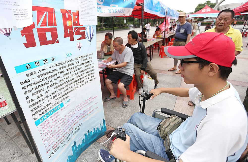 求职者在认真阅读用人单位招聘简章。
