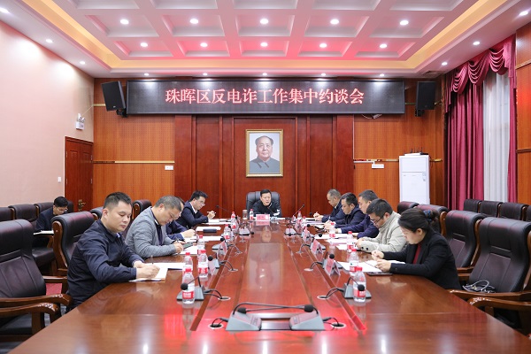 10月20日下午,我区召开反电诈工作约谈会,对在全区反电诈工作中相对滞后的5个乡街负责同志进行约谈。区委书记魏中发出席会议并讲话,区委常委、政法委书记周爱民主持会议,区委常委、纪委书记、区监委代理主任肖高德,区政府党组成员、珠晖公安分局局长范烨出席。