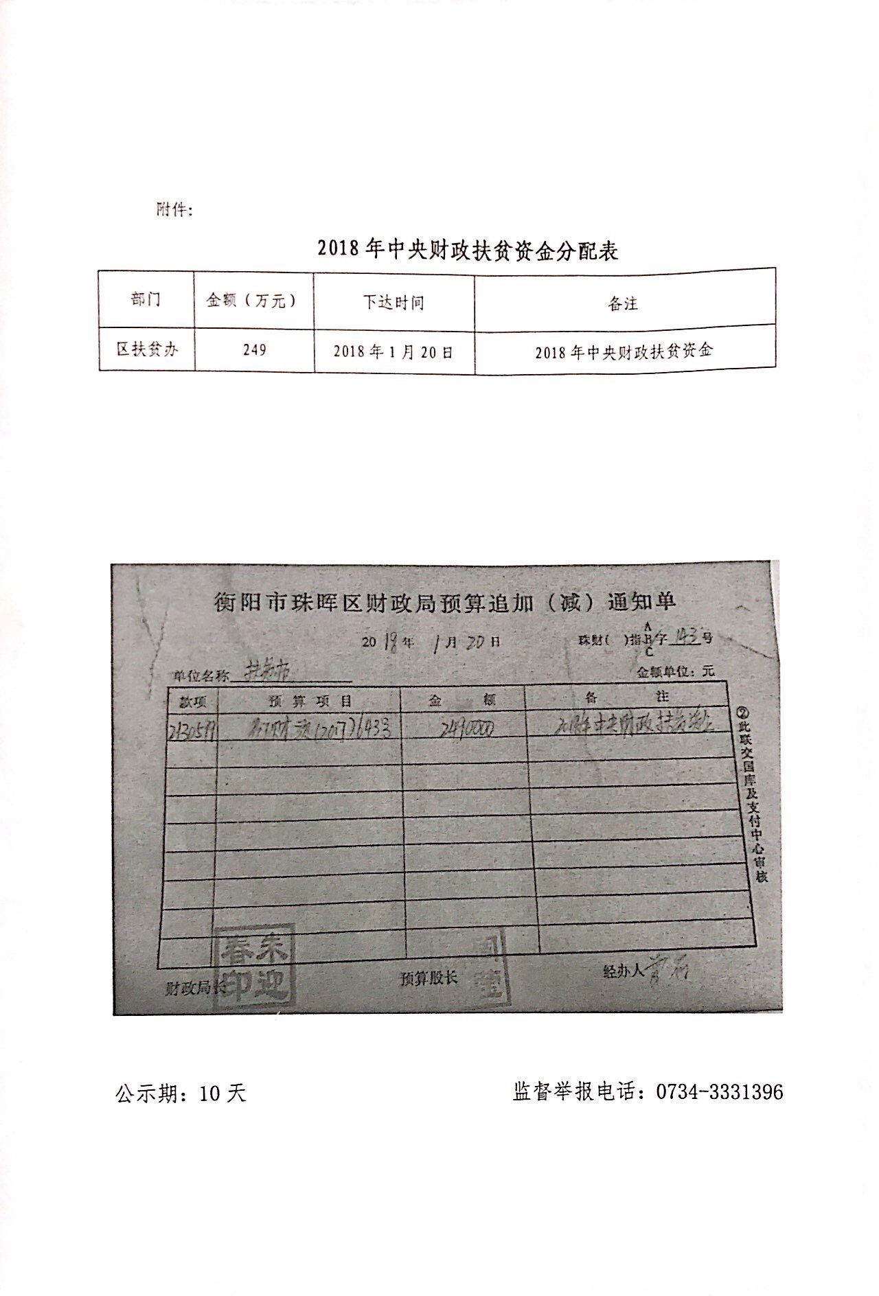 珠晖区财政局关于下达中央财政专项扶贫资金的通知