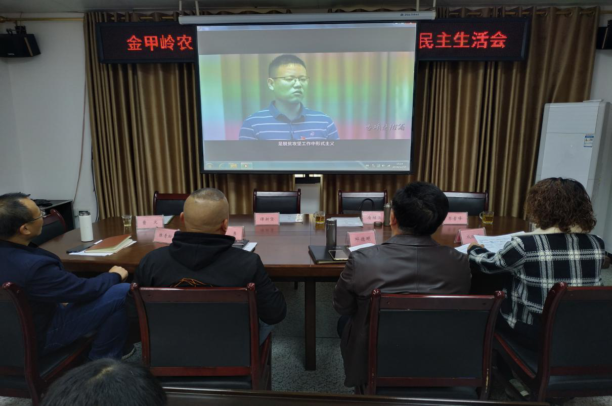 2019年12月16日下午,金甲岭农场召开“不忘初心、牢记使命”专题民主生活会。区委主题教育指导4组唐继俊、李青峰二位同志到会指导。区委巡察组谭新坚、曹文二位同志列席了会议。
