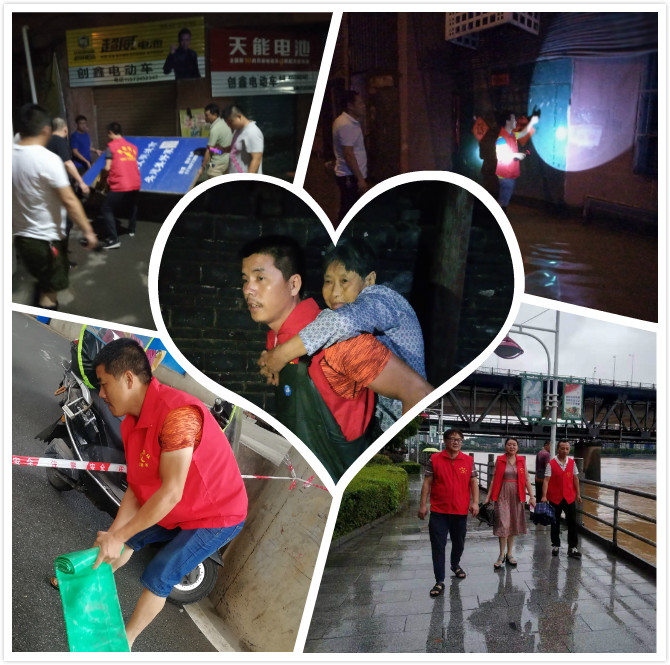 洪水无情人有情,到处有红马甲留给我们感动的身影。广东路街道通过宣传动员,号召广大“衡阳群众”参与到这场防汛救灾战役中。一些内涝点的“衡阳群众”积极开展自救,协助街道社区疏散群众。部分“衡阳群众”志愿者主动参与社区灾情和河堤巡查,协助开展应急救灾行动。荷花坪社区的普通党员段峥嵘,是一名退伍军人,退伍不褪色,主动参与到荷花坪内涝点的救灾抢险行动中,无私奉献,和街道社区干部一起奋斗在内涝点排积水一线,10日晚上,在疏散内涝点的群众时,他冲锋在前,挨家挨户的敲门通知没有转移的群众,当他把一位行动不便的老奶奶背出来转移到安全的地方后,他已精疲力尽。他用责任守护着受灾群众的安全,用行动诠释了“衡阳群众有你最美”内涵。