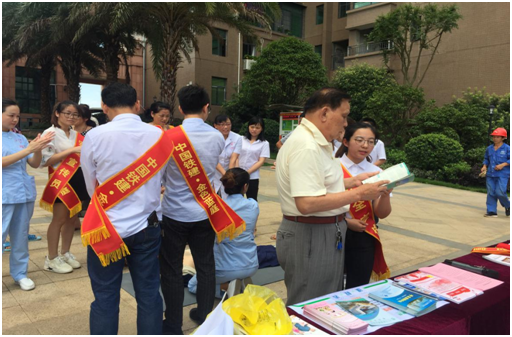 今年6月是全国第18个“安全生产月”,为深入开展好“安全生产月”活动,牢固树立安全发展观念,提升居民安全文明素质,增强大家安全意识,进一步加强安全生产宣传教育工作,推动安全生产形势持续稳定向好。6月15号上午,苗圃路社区联合中铁二十五局开发有限公司金色蓝庭项目部、南华医院,围绕“生命至上、安全发展”为主题,开展“6·16”安全生产宣传咨询日活动。