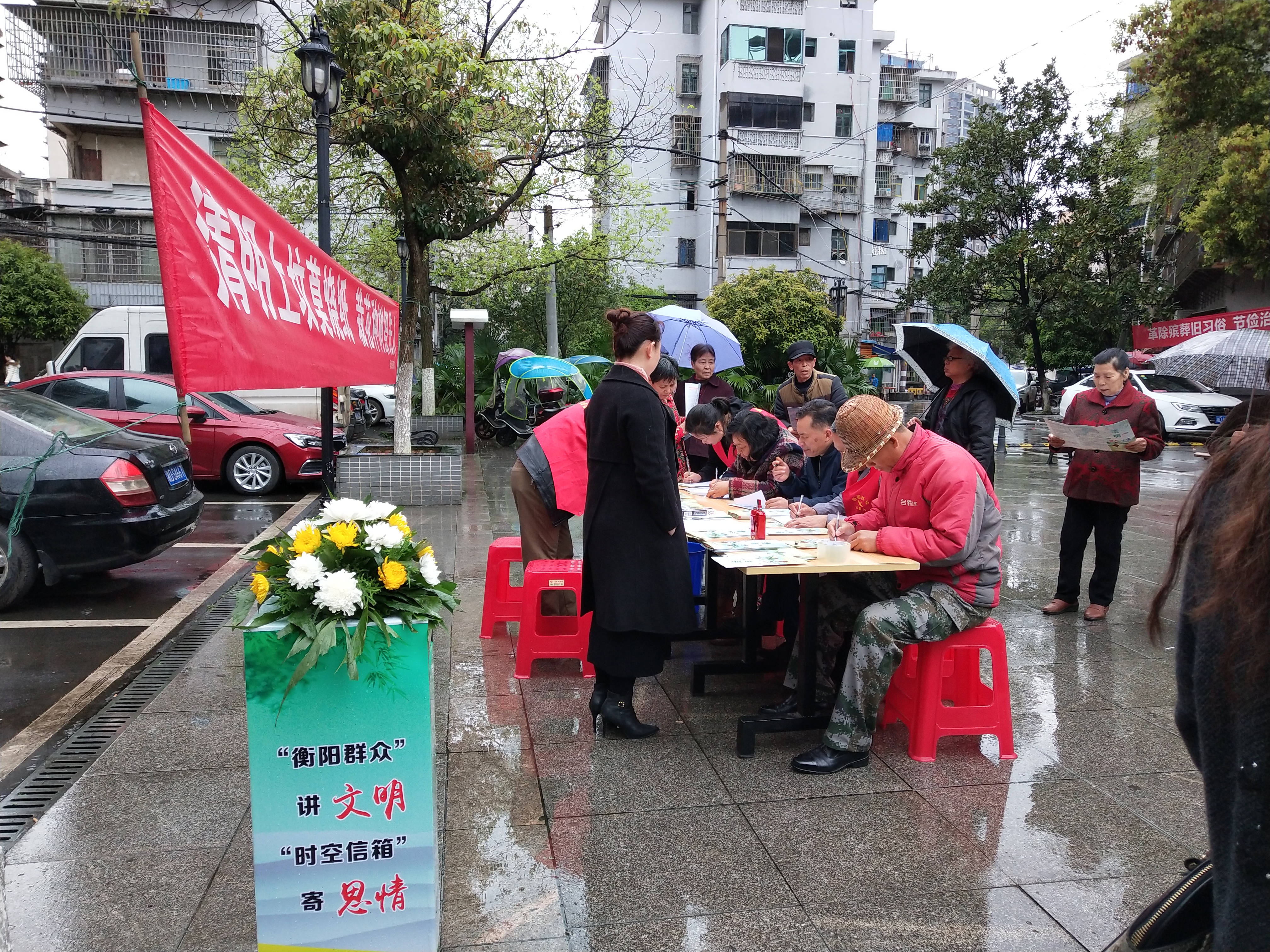 清明时节雨纷纷,文明祭祀树新风。4月3日,和平小区文化广场上,广东路街道的党员干部及“衡阳群众”志愿者在细雨中集中开展文明祭祀宣传活动。倡导市民通过书写信件的方式,通过这小小的信箱,穿越时空的阻隔,表达思念。信件抒真情,信箱寄哀思。“时空信箱”的设置,既充分考虑到了祭扫群体的情感需求,又节能环保、文明时尚。