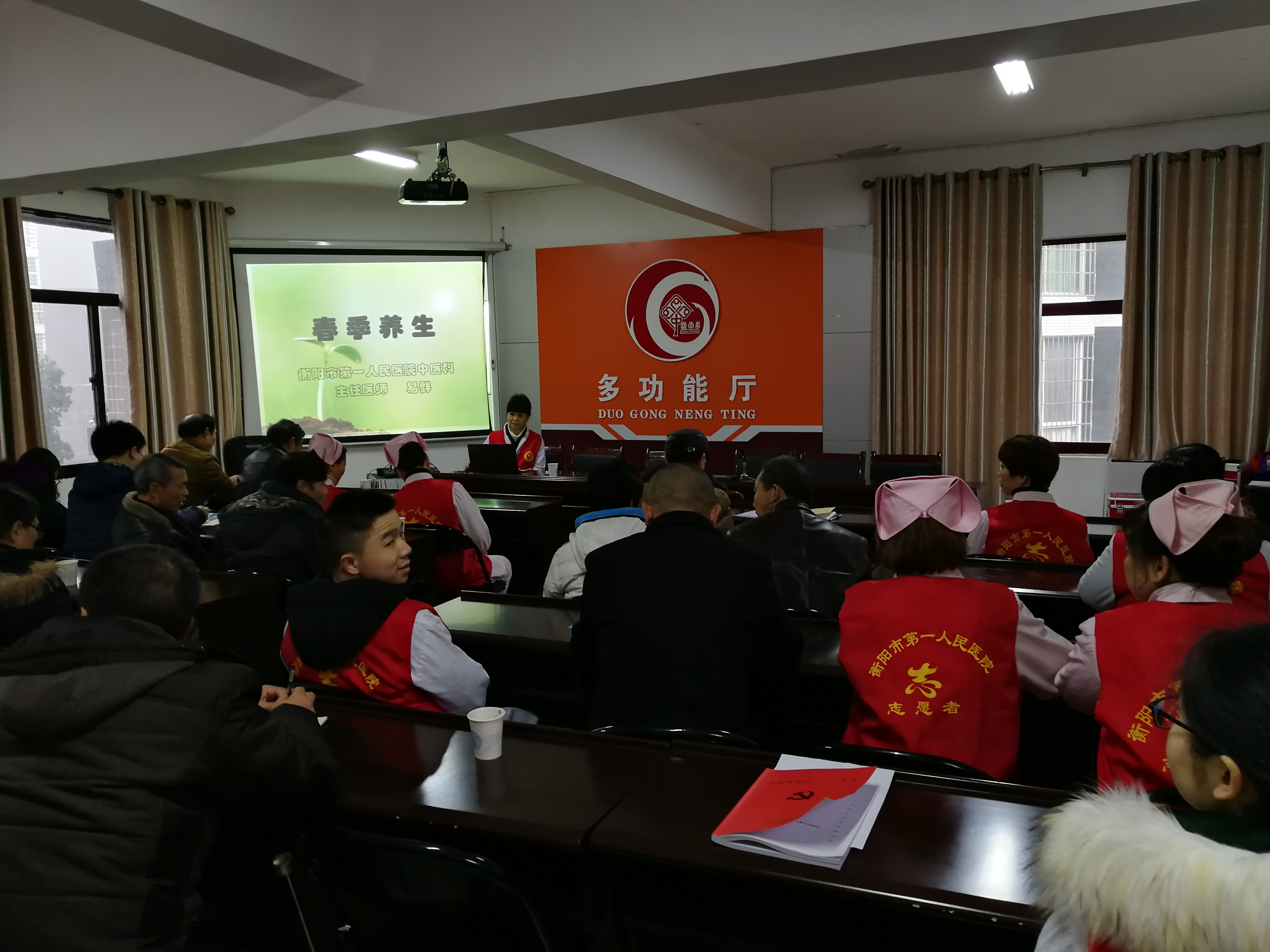 春天是万物复苏的季节,做好春季养生保健,是健康一整年的美好开端。为了普及科学的春季养生保健知识,增强居民健康意识。2019年2月28日下午,湖北路社区携手市第一人民医院中医科在社区市民学校举办春季养生讲座。
