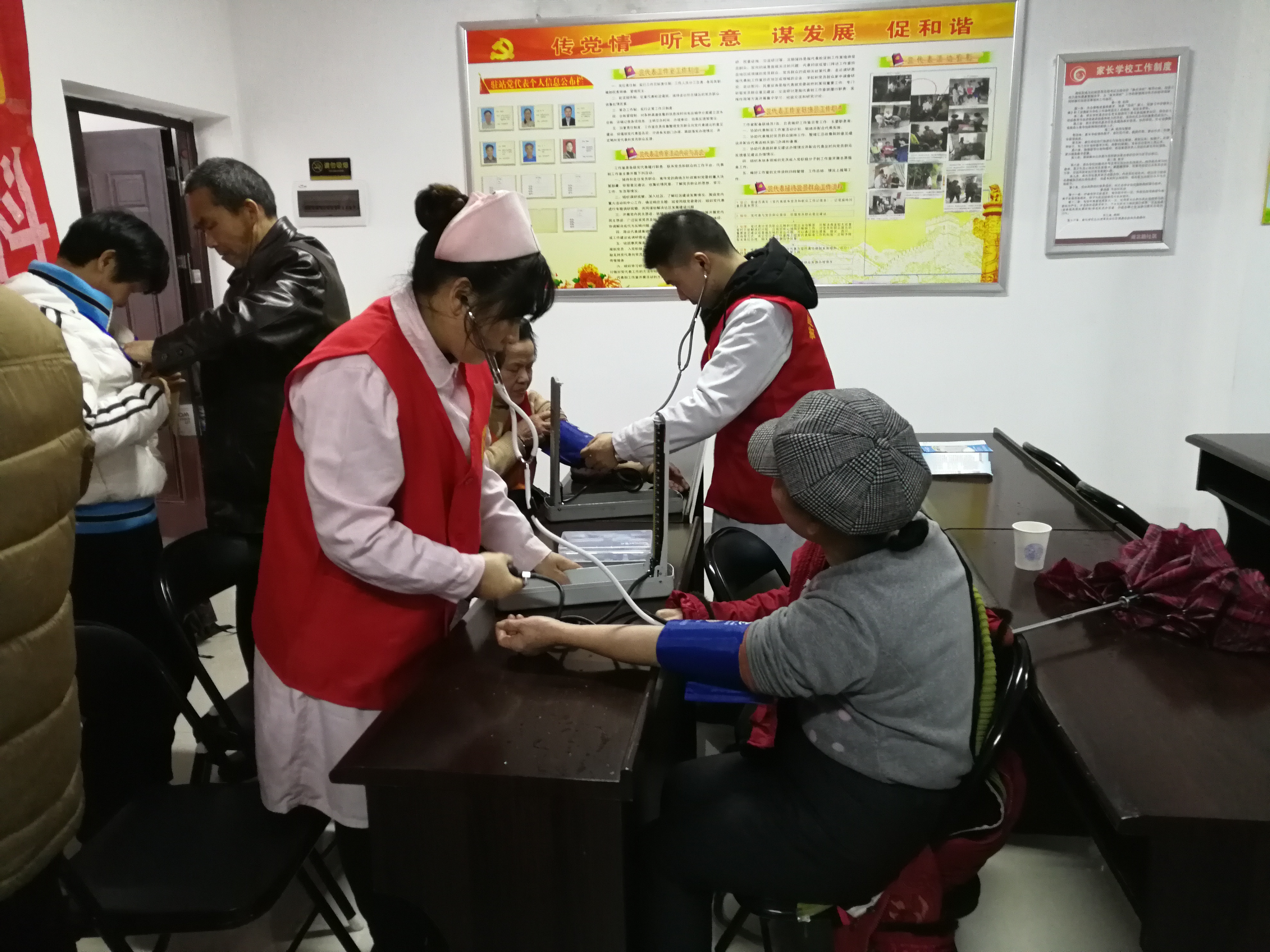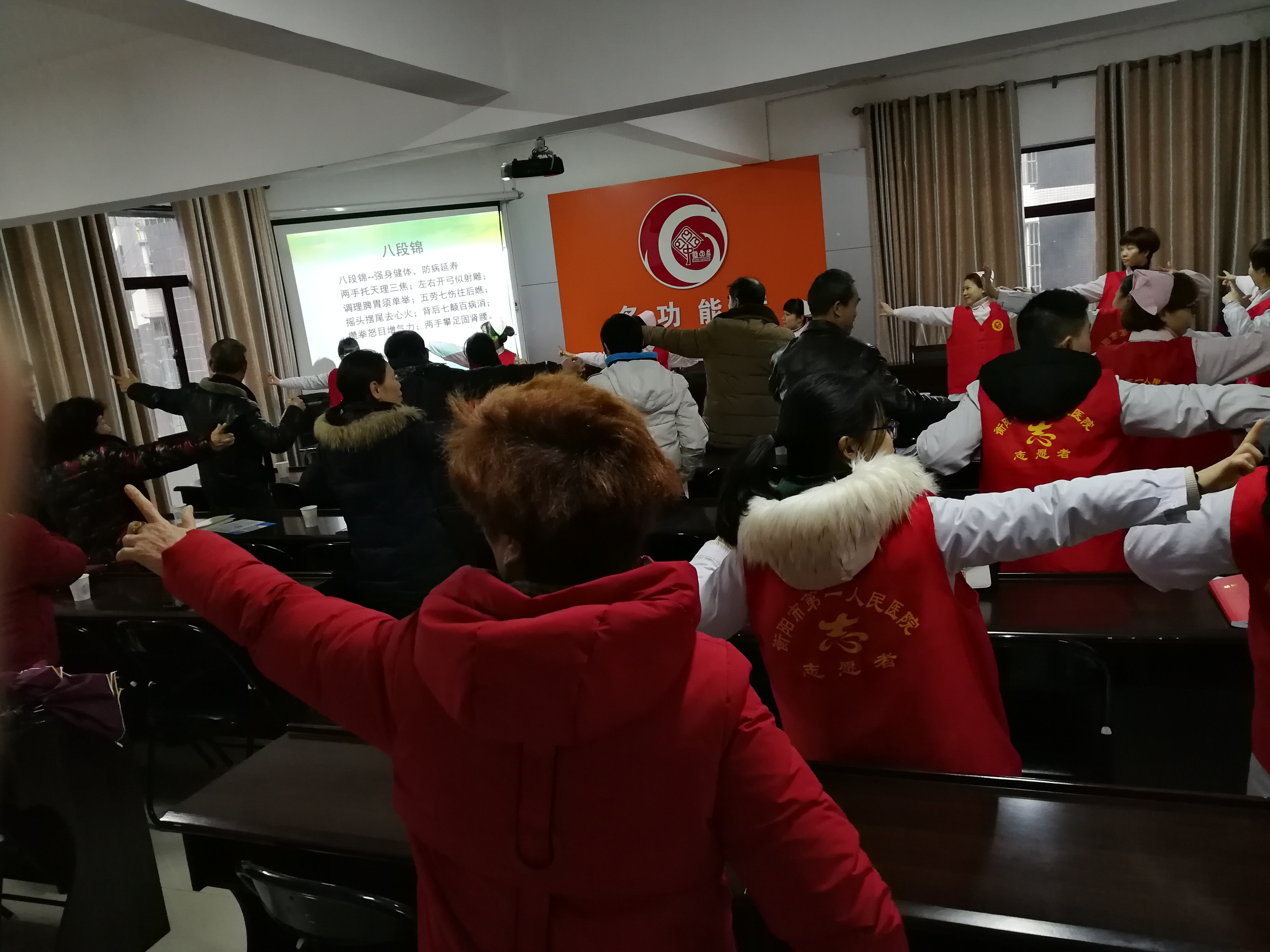 讲座结束后,易主任带领中医科的志愿者们还教大家学习养生功法——八段锦,让大家在闲暇之余通过练习八段锦起到强身健体作用,并免费为居民检查血压、血糖。