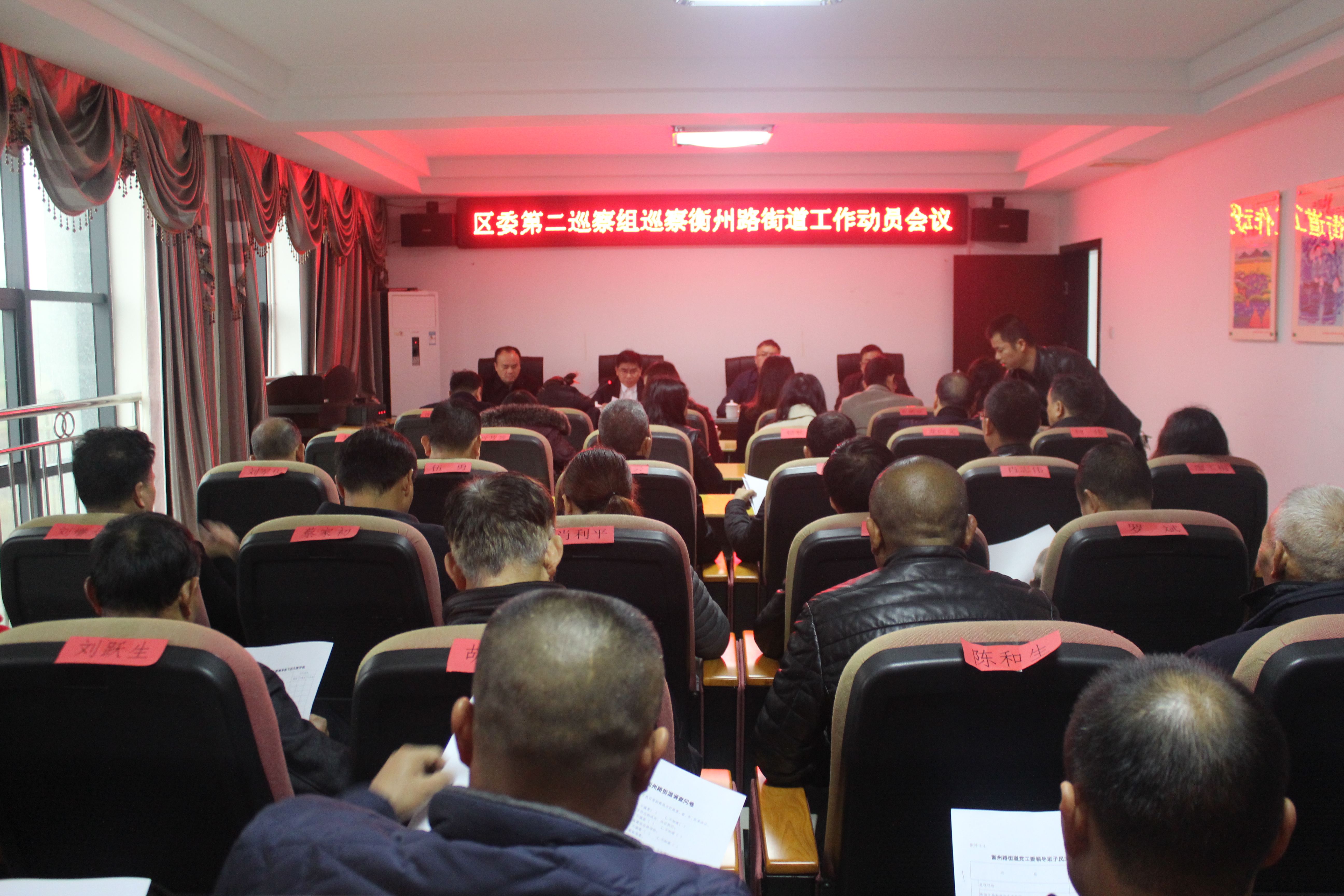 11月15日上午,区委第五轮巡察第二组在衡州路街道召开巡察工作动员会,街道全体干部职工、两代表一委员、社区主干、贫困户代表、坐落单位代表以及居民代表参加会议,街道党工委书记主持会议。