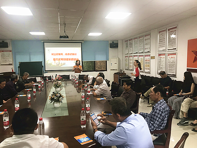 彭老师结合自己亲身经历,从树立家风家训方法入手。现场互动频繁,引导居民要提高孩子素养需要重视家风的传承作用,挖掘、学习老祖宗智慧,让好的家风好家训代代相传,培育和树立正确的人生观和价值观,营造温馨和睦、文明向上的家庭氛围。