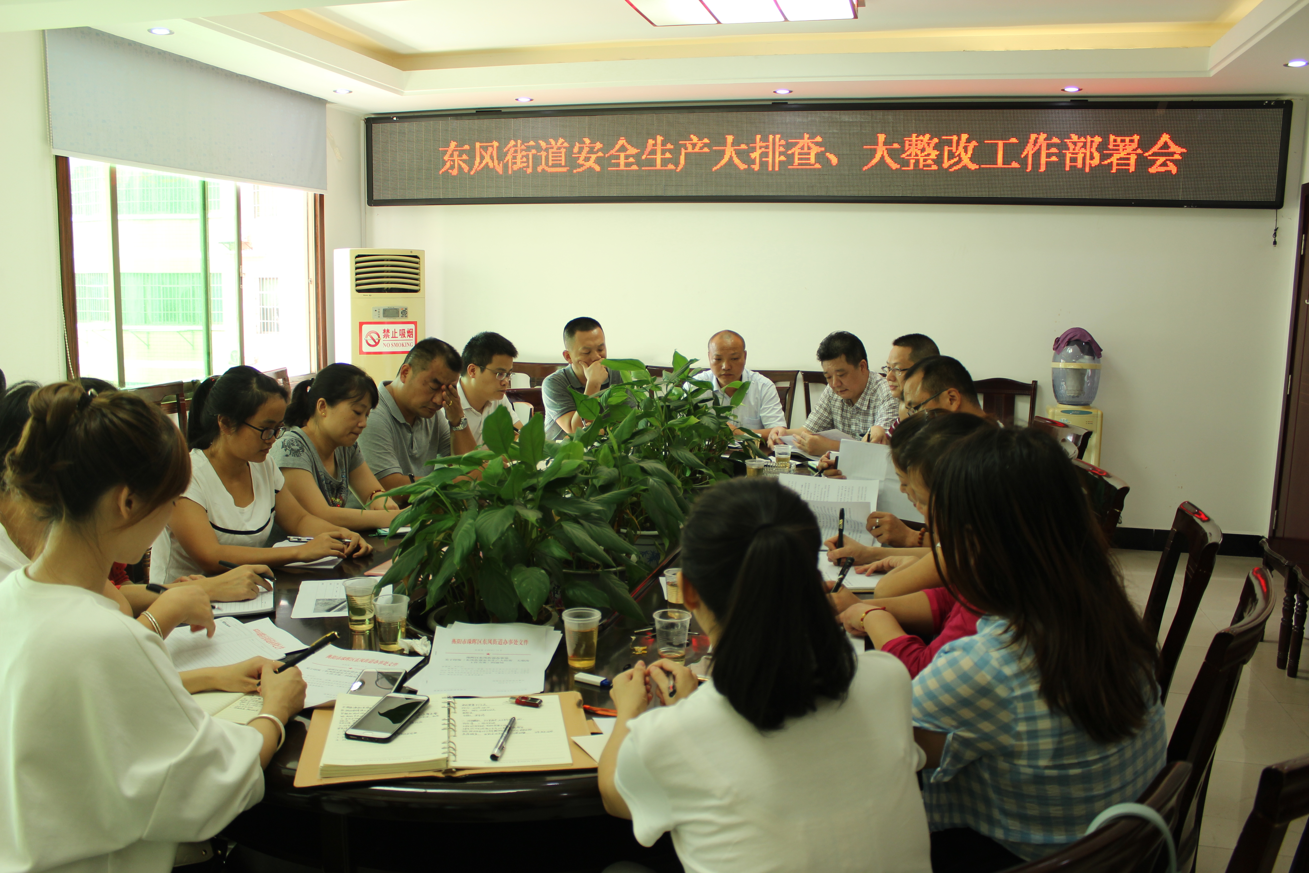 9月17日下午,东风街道在街道四楼会议室召开安全生产大排查、大整改会议。会议对全街九月至十二月的安全生产大检查、大整改行动进行了全面部署,印发了《东风街道安全生产大检查、大整改工作方案》。会议由街道党工委书记黄秀峰主持,街道全体班子、安环站全体成员及各社区书记主任、安环专干参加会议。