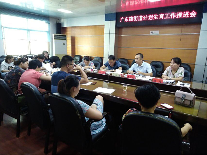 为落实区计划生育工作推进会会议精神,广东路街道迅速研究,部署相关工作。8月2日,召开了街道计划生育工作推进会,街道相关领导,卫计办工作人员、各社区书记和卫计专干参加会议。
