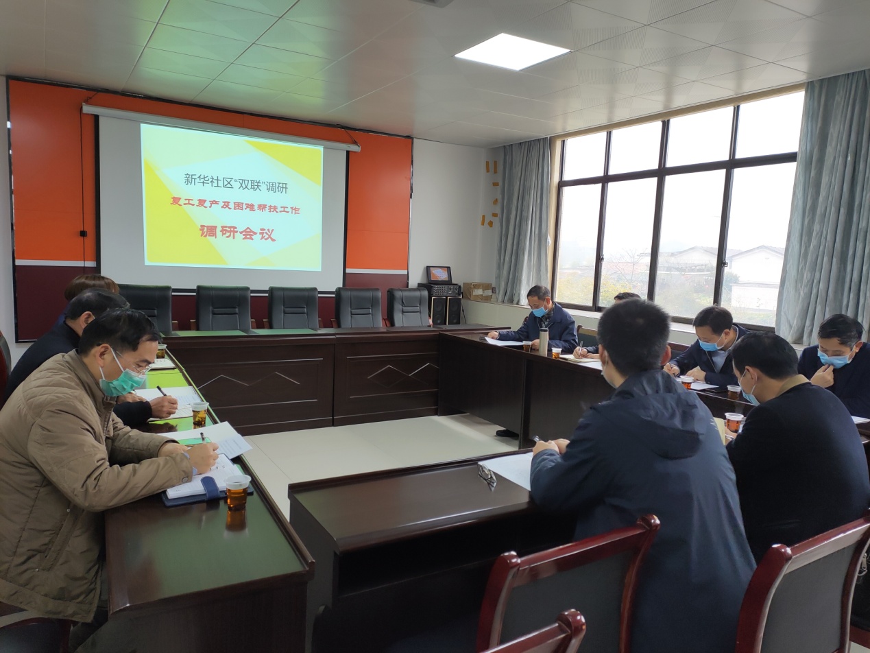 3月17日上午,衡阳市总工会党组书记、副主席单绪平同志率领衡阳市政府办、建设银行衡阳分行、市税务局一行8人到"双联"帮扶对象珠晖区东阳渡街道新华社区开展复工复产及困难帮扶调研活动,并邀请了新华社区坐落单位272铀业公司相关领导参加了调研座谈会。