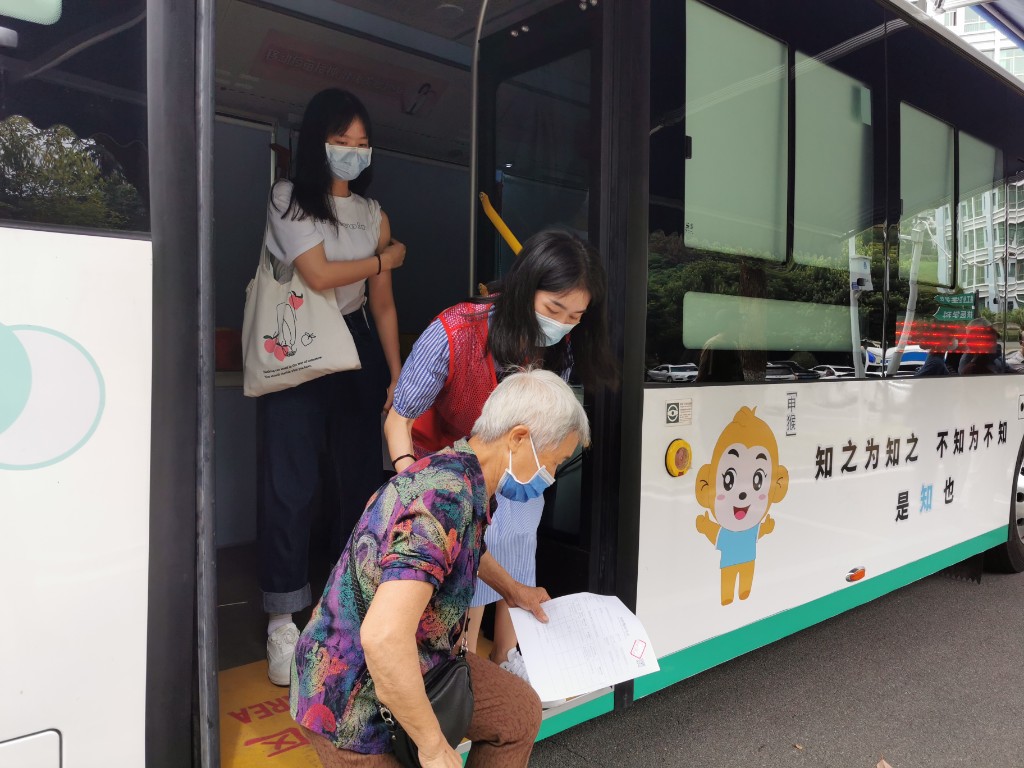 现场医护人员有序开展健康咨询、登记、量血压、接种、留观等工作,耐心引导每一位前来接种的居民。一位刚被"衡阳群众"志愿者搀扶着走下接种车的奶奶,笑容满面,连口称赞:"我很早就想来打疫苗了,但是年纪上来了,腿脚不利索,儿子不在身边,一直拖到现在。这次接到通知,得知疫苗接种车会开到这里,这不就在家门口嘛,散散步就能到,终于不用跑去江东中医院接种点,方便很多。"
