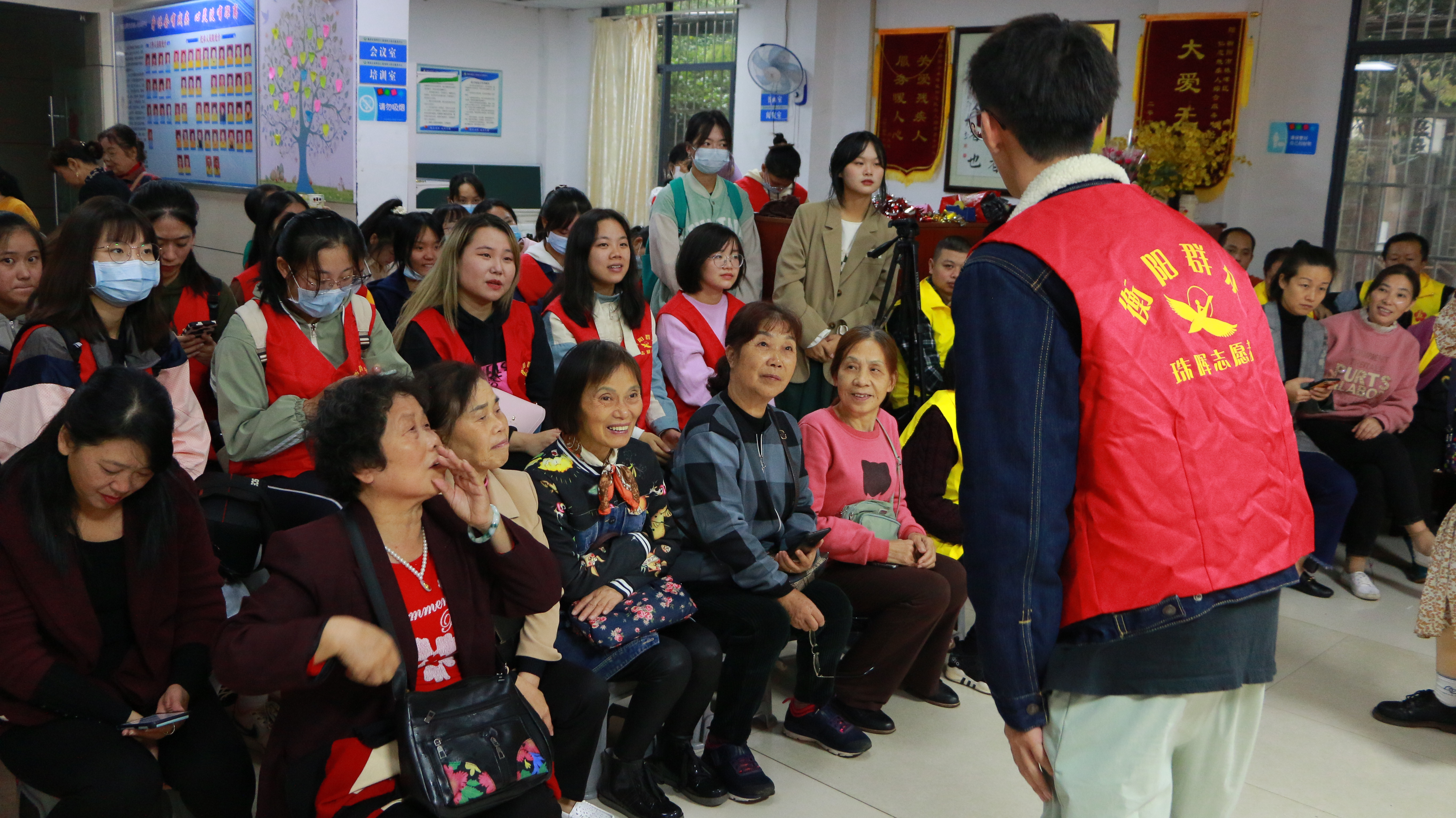 活动现场,青年志愿者们通过一问一答的互动,接地气的相声表演向老人们传递反电诈、反非法集资等与老人日常生活息息相关的常识,为幸福祥和的晚年生活添砖加瓦。悠扬的笛子独奏,汉服社的扇子独舞、歌颂祖国的集体诗朗诵,都受到了在场老人的阵阵掌声和赞扬。