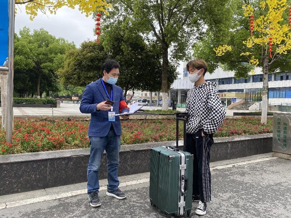 "您好,我是广东路街道的工作人员,请问你们家里最近有从外地回衡阳的人员吗?"