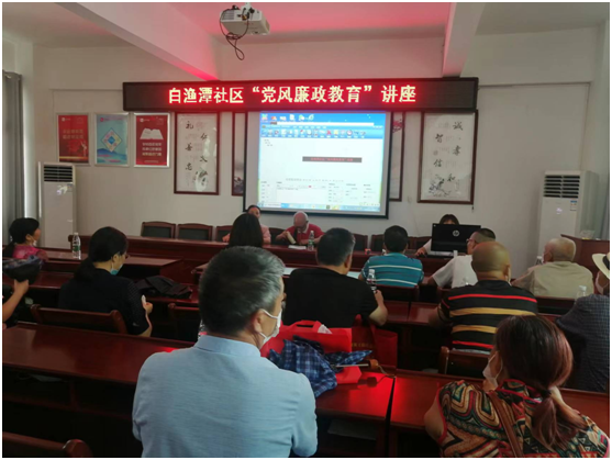 为做好清廉社区建设工作,6月8日上午,衡州路街道白渔潭社区联合退休高级教师组织社区党员、社区工作人员、居民群众开展以“清正廉洁文化”为主题的报刊展览活动。以文化熏陶的方式引导党员群众自觉加强党性修养。