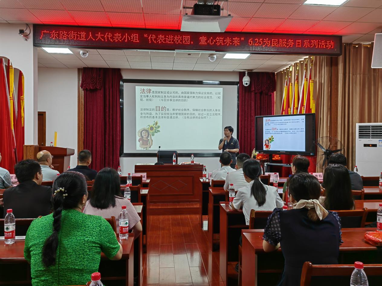 为进一步加强人大代表与群众的血肉联系,充分发挥各级人大代表先锋模范作用,努力塑造为民、务实、担当的人大代表队伍形象。6月8日上午,广东路街道人大代表小组联合区人民法院及区红十字会在东站路小学开展"6·25"为民服务日活动,区委副书记、广东路街道党工委书记张斌、区人大常委会副主任凌小敏、区教育局局长、区教育局总督学、广东路街道全体在家班子成员及街道人大代表小组成员参加活动。