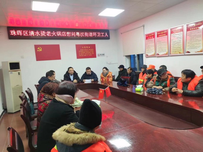 (通讯员:冯琼)寒冬已至,有那么一群人辛勤工作活跃在凌晨与深夜,他们就是"城市美容师"环卫工人,为了感谢环卫工人为粤汉辖区做出的贡献,切实把关心关爱送到环卫工人心坎上,2月7日上午,粤汉街道联合辖区企业清水烫老火锅和衡阳市成龙职业技术学校开展新春送温暖志愿服务活动,向环卫工人送上了米、食用油等慰问物资,并致以新春问候和诚挚祝福。