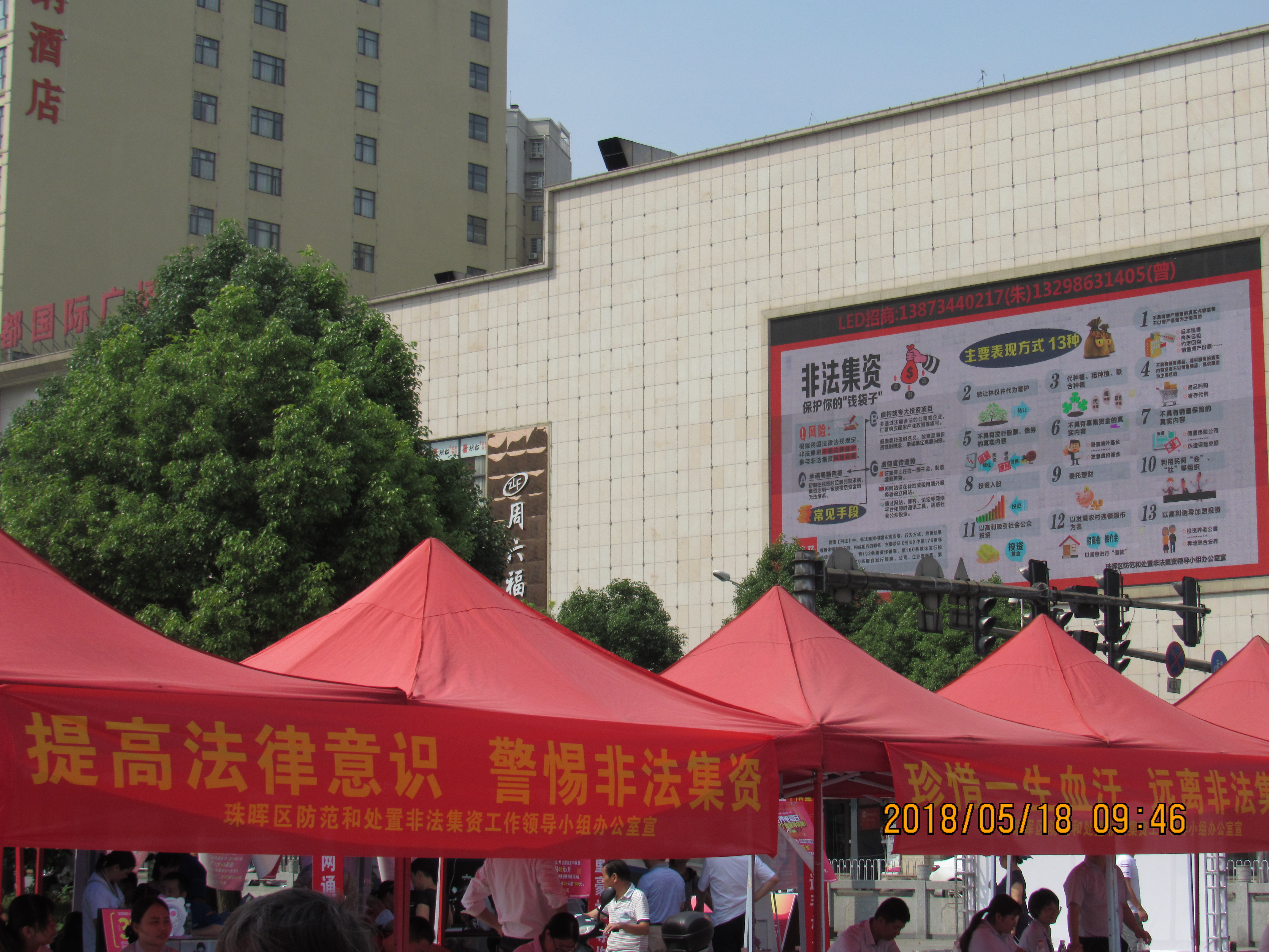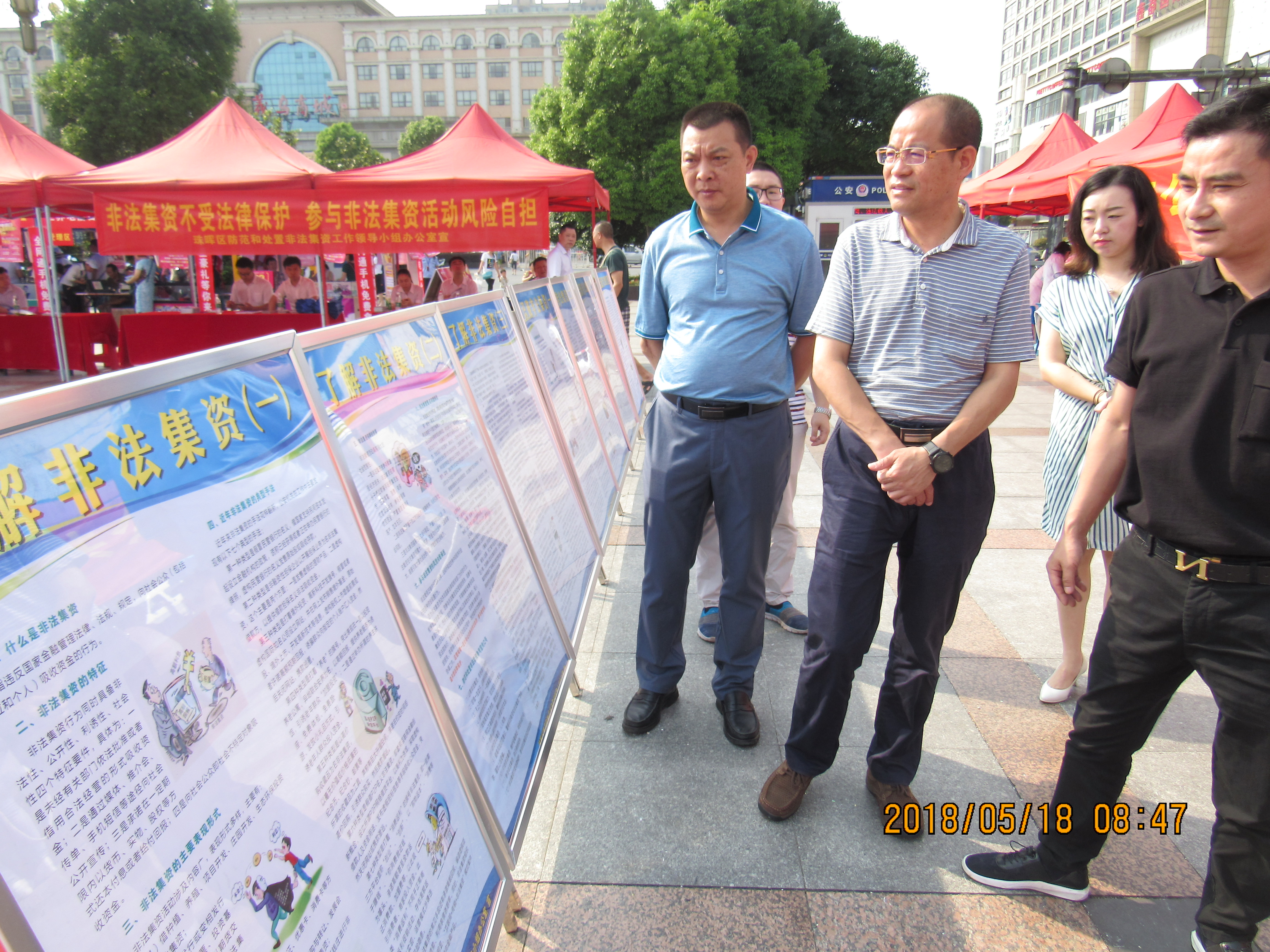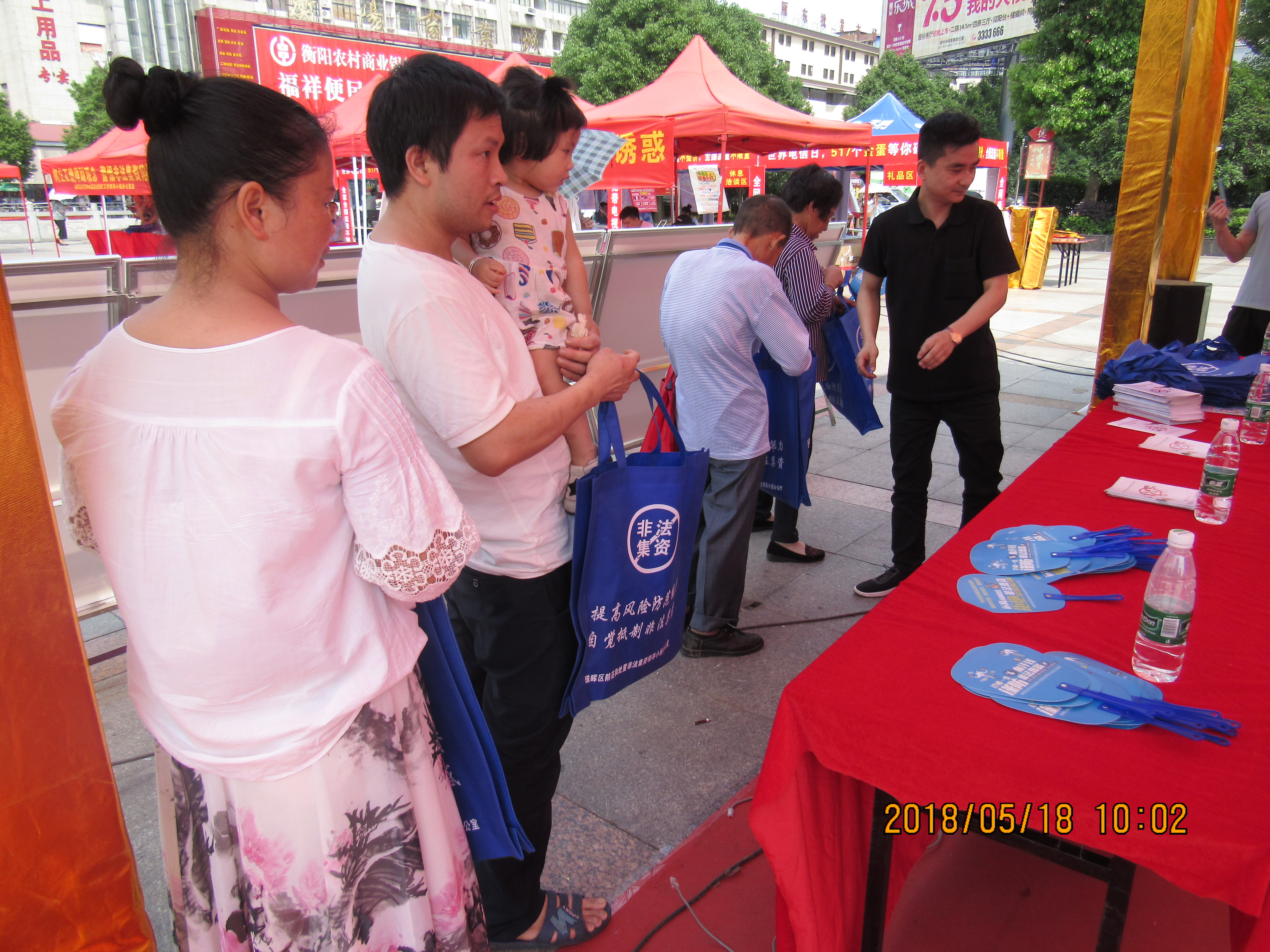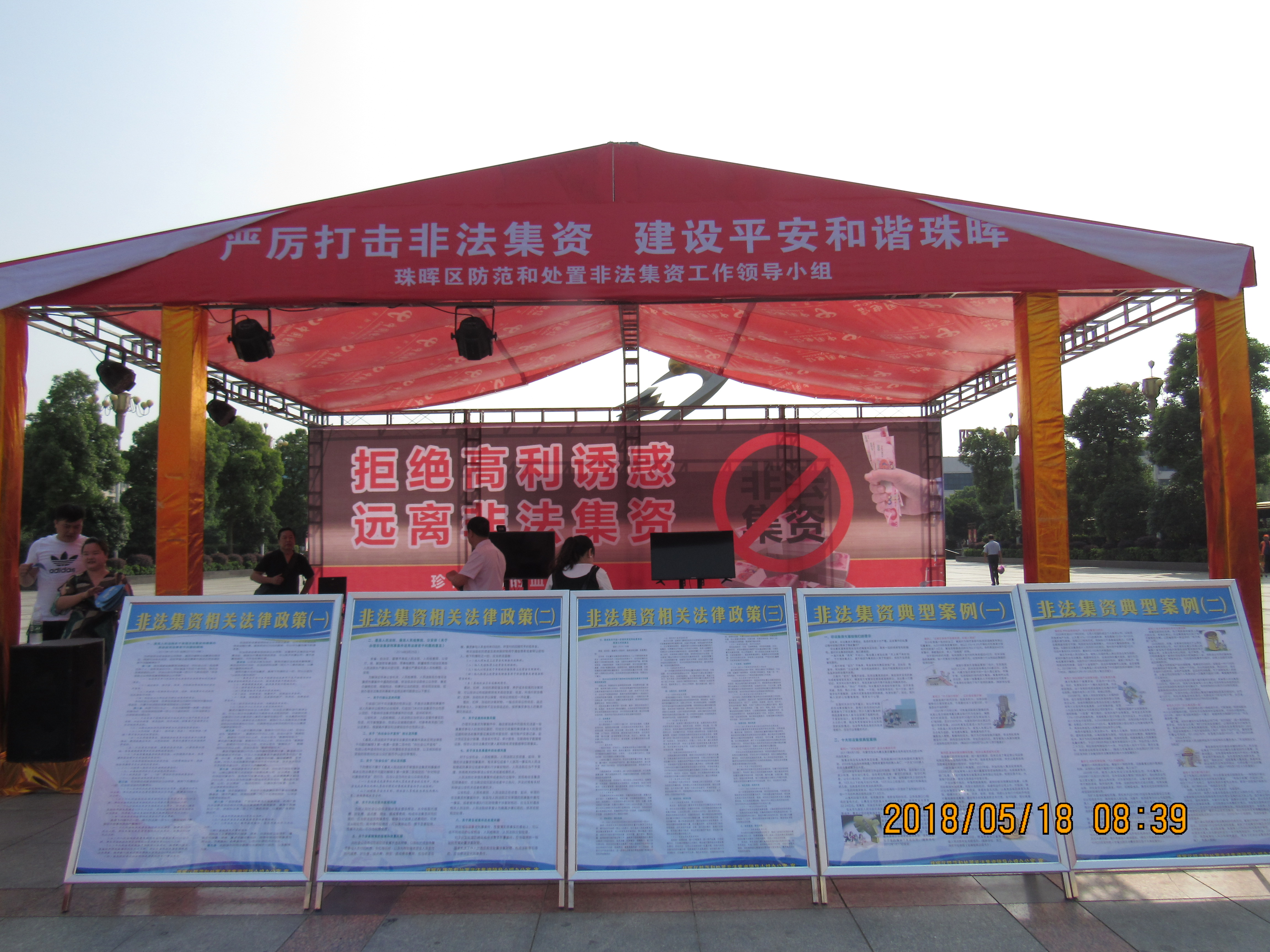 5月18日,珠晖区“防范非法集资等金融风险宣传教育月”活动在衡阳火车站广场隆重举行启动仪式。辖区内10家银行全程参与了此次宣传教育活动,区委书记陈礼洋、区长助理戴阶平出席启动仪式。