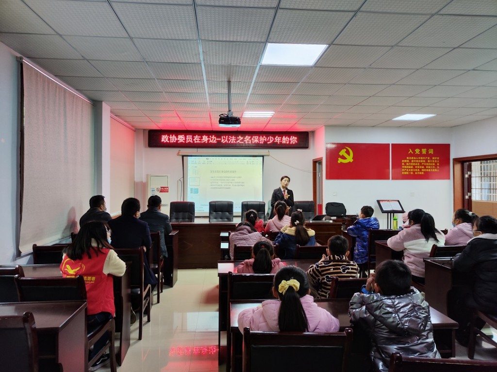 为丰富未成年人假期生活,利用寒假加强青少年儿童法治宣传教育,1月20日,冶金街道政协委员工作室携政协珠晖区特邀界别小组青年委员,一同走进由共青团珠晖区委员会与建国里社区联办的2022年寒假季“阳光假期”活动,为孩子们开讲以“政协委员在身边——以法之名保护少年的你”为主题的法治讲座,教育引导孩子们养成学法、知法、懂法、守法的良好习惯,并学会用法律的武器来保护自己。
